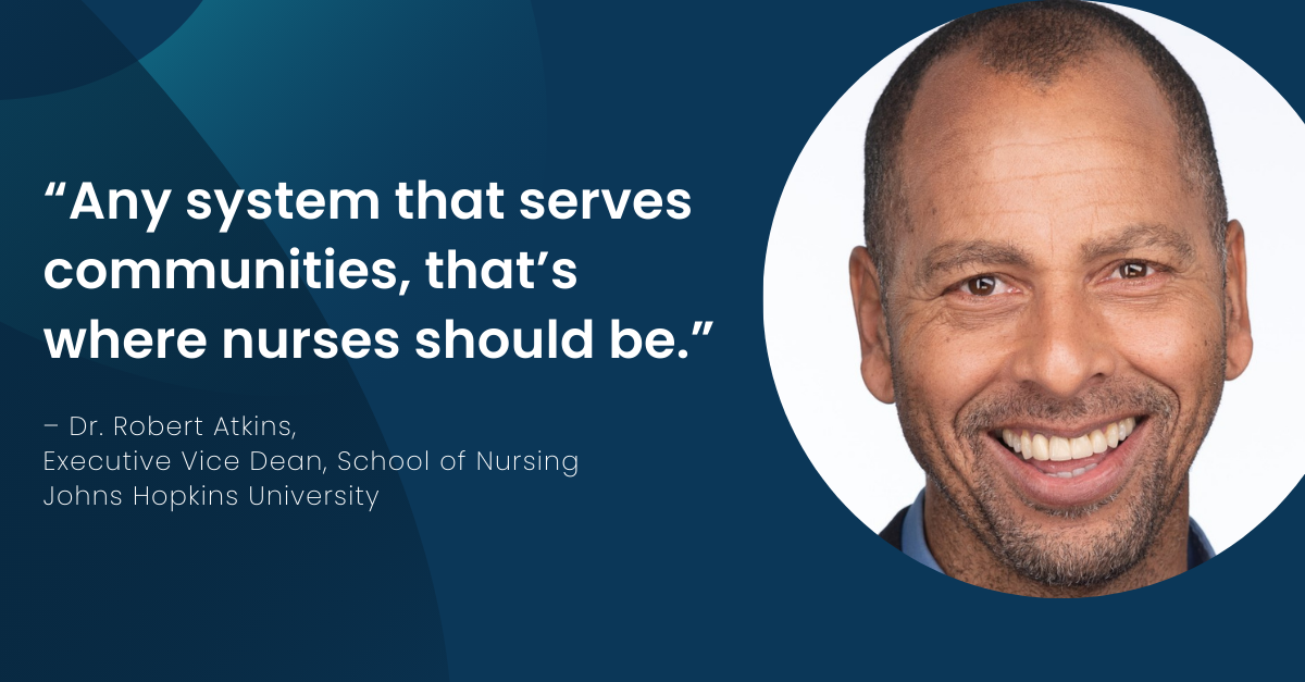 Dr. Robert Atkins, a former school nurse and nonprofit leader in Camden, NJ, is executive vice dean of the School of Nursing at Johns Hopkins University. He advocates for community-based nursing and is dedicated to increasing the participation of diverse nurses in the nursing workforce by creating new pathways for education and more affordable options for their education. Following is a condensed version of our conversation. The full interview is available here.